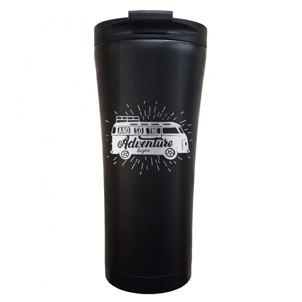 Термокружка с гравировкой Classic "Adventure begins" 500 мл черная