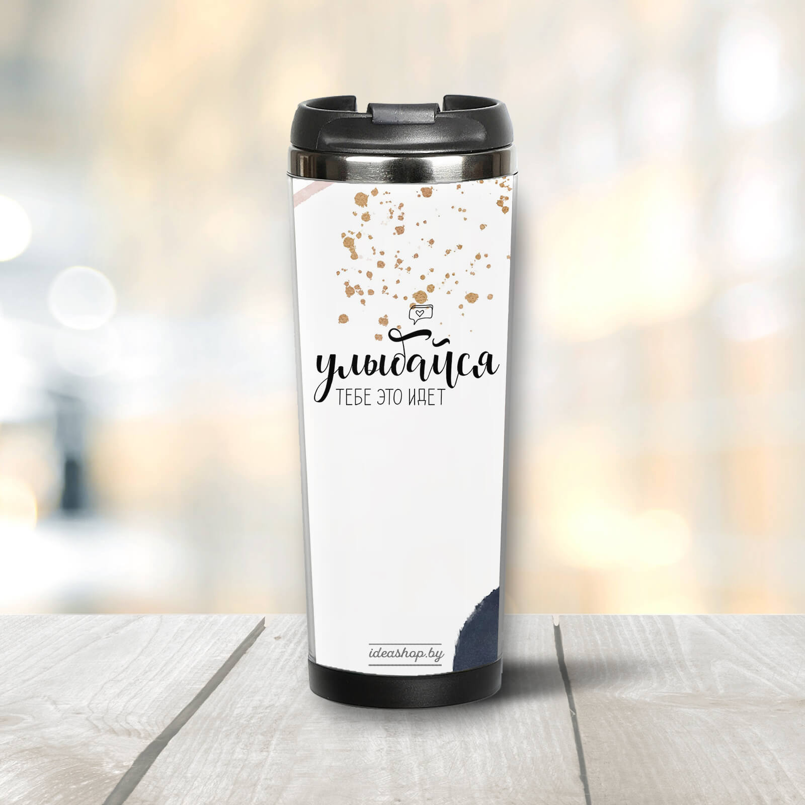 Термокружка "Улыбайся" станет оригинальным и практичным подарком.